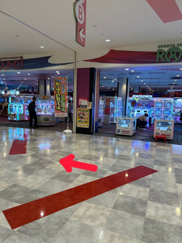 降りると目の前にラウンドワンが出てきますので前の通路を左へ