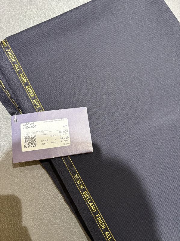 オリジナル生地ビエラノフィニッシュのウール100%です。高コスパな生地で大変人気が高く、綺麗な艶もあるので即決でした。