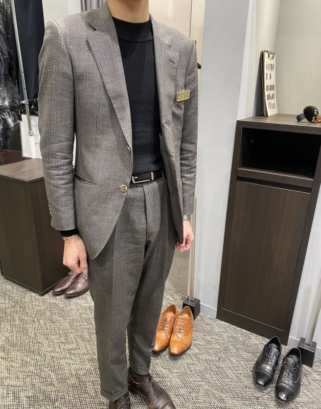 王道グレンチェックのスーツで