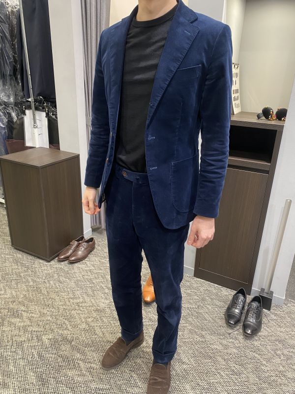 ネイビーコーデュロイ素材でオーダーでしか手に入らないです。