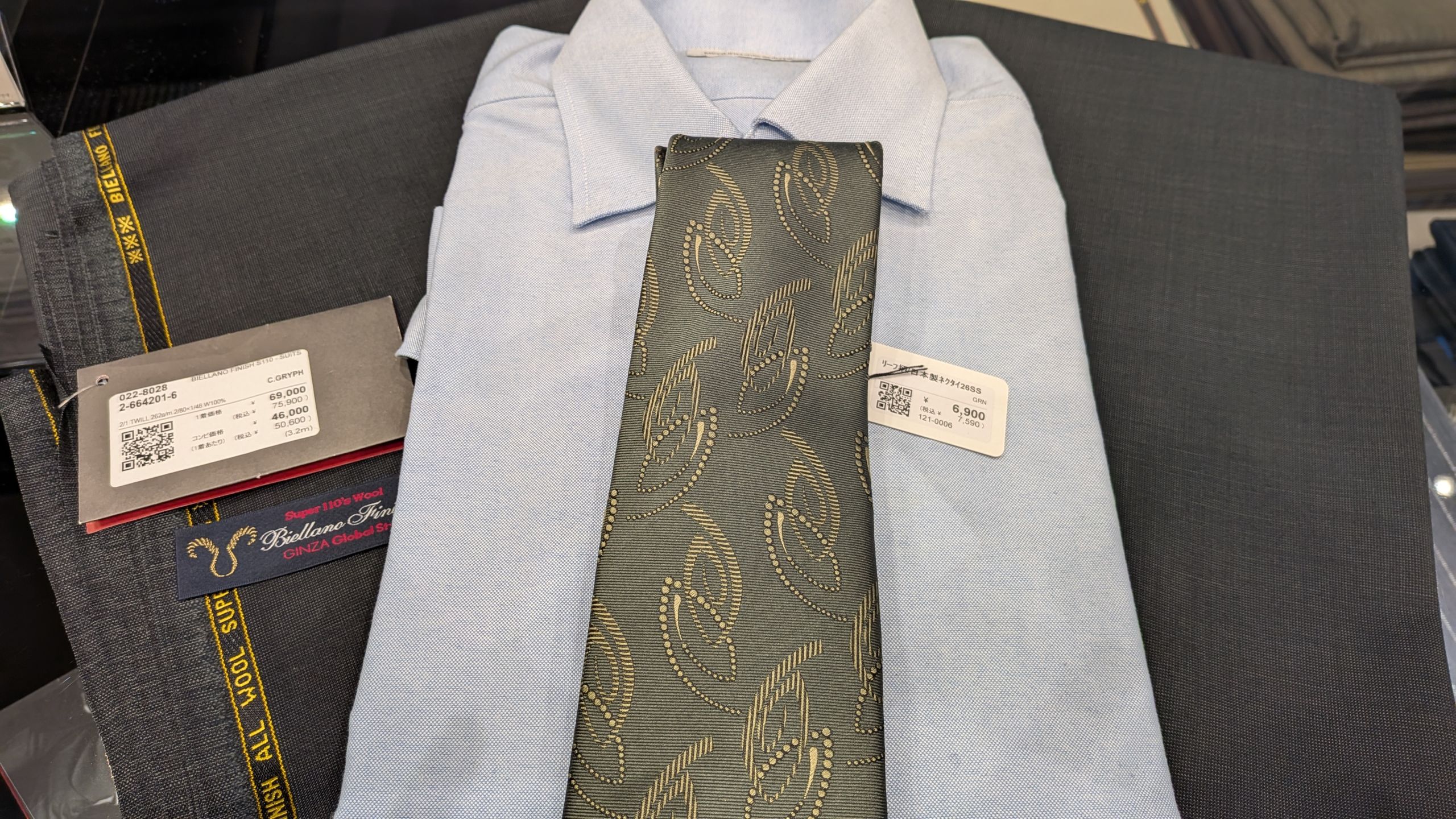 パット見、花柄だと思ったのですが小紋柄のネクタイらしいです