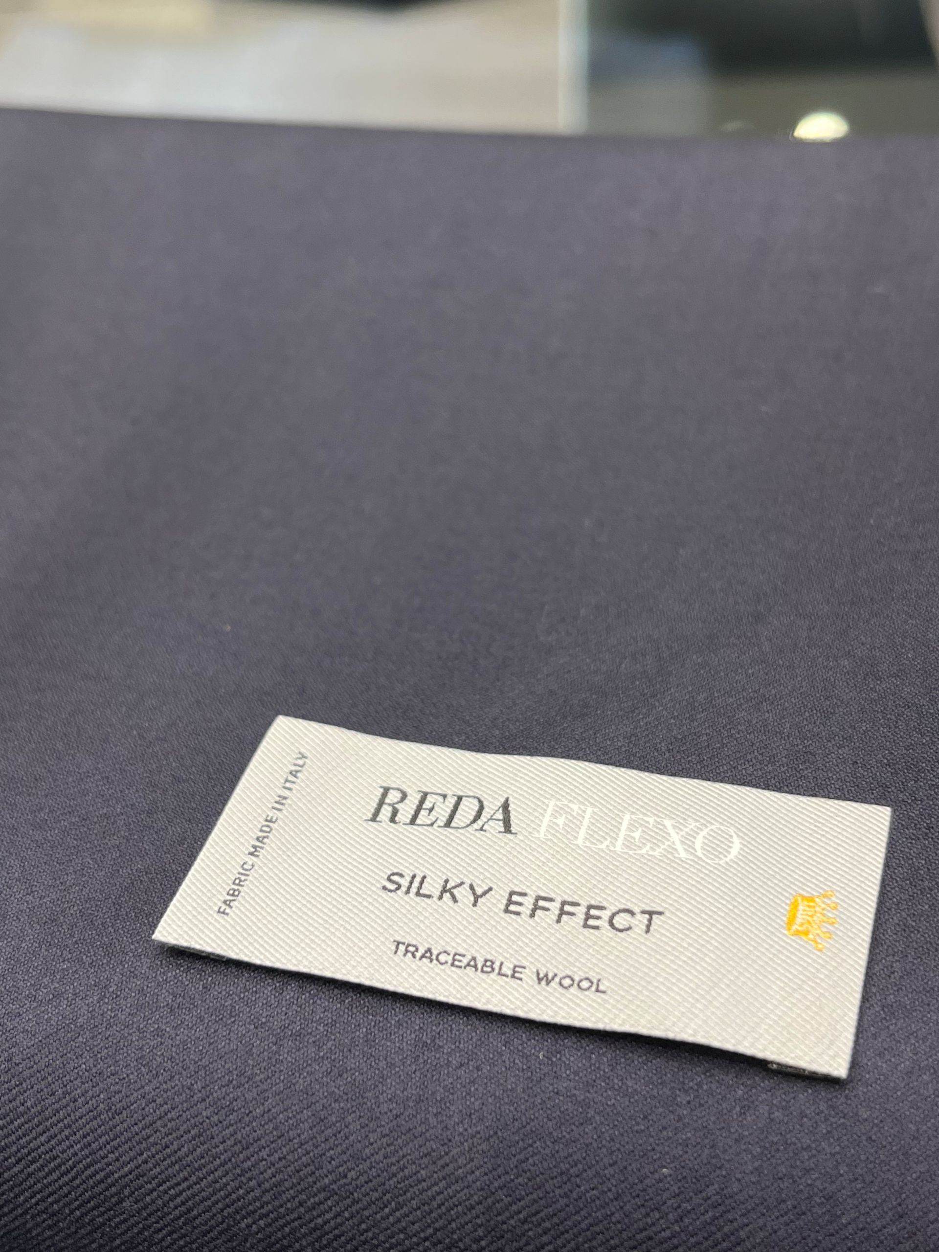 レダが独自開発した“ドルフィン加工”と呼ばれる、特殊なローラー技術により高温と圧力を施し、生地に熱を加えることで美しい光沢を生み出しています。ソフトな風合いと、織り目が消えないように“形状安定加工”も施されています。