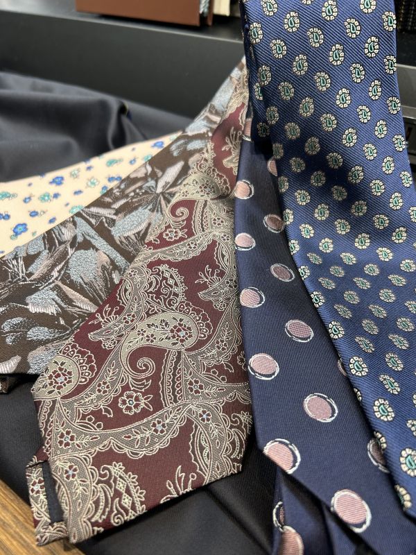 春・夏向きのさわやかなものからしっかりと重厚感のあるネクタイもございます!