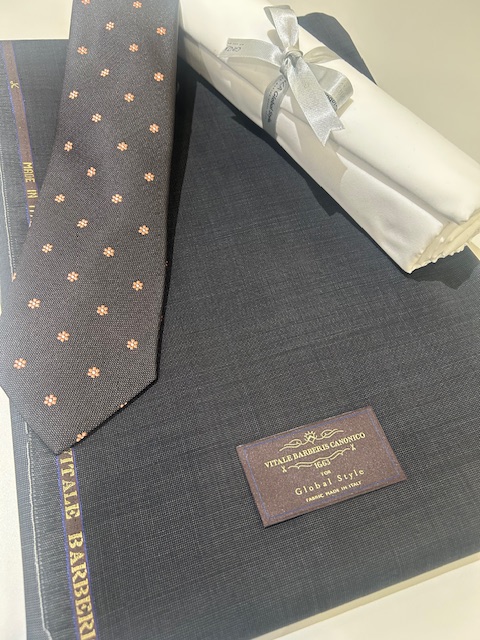 今回はグレーの生地に、ネクタイは同系色で、