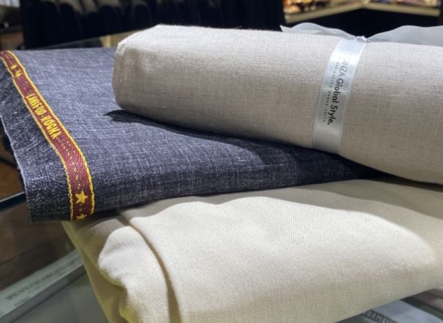 リネンが入る事に寄っての絶妙な色ムラや薄っすらとネップがあることで涼やかな表情を表現してくれます。