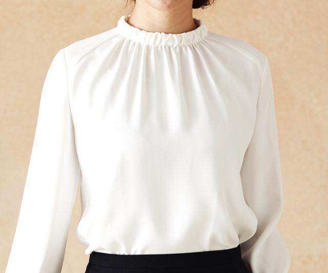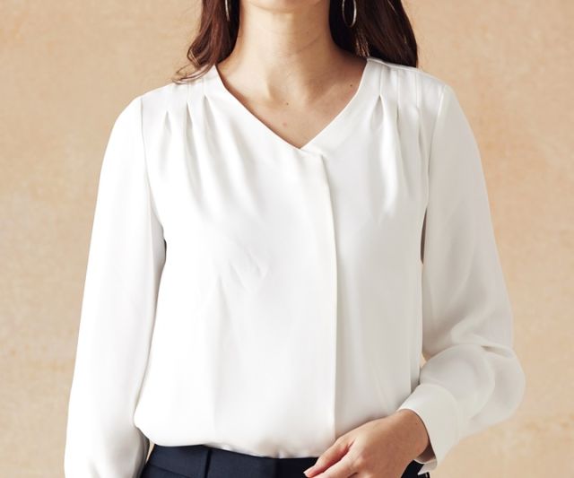 ブラウスだけでも、スーツと合わせても、上品にまとまります!