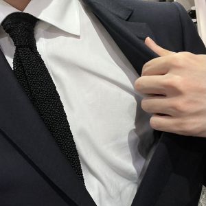 衿の開きが広めでノーネクタイのスタイルがよりお洒落に決まります。