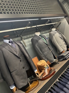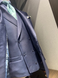 来店頂いた際は、ネイビーやグレーのスーツを検討頂いているお客様が多いかと思いますが、濃いものにするのか