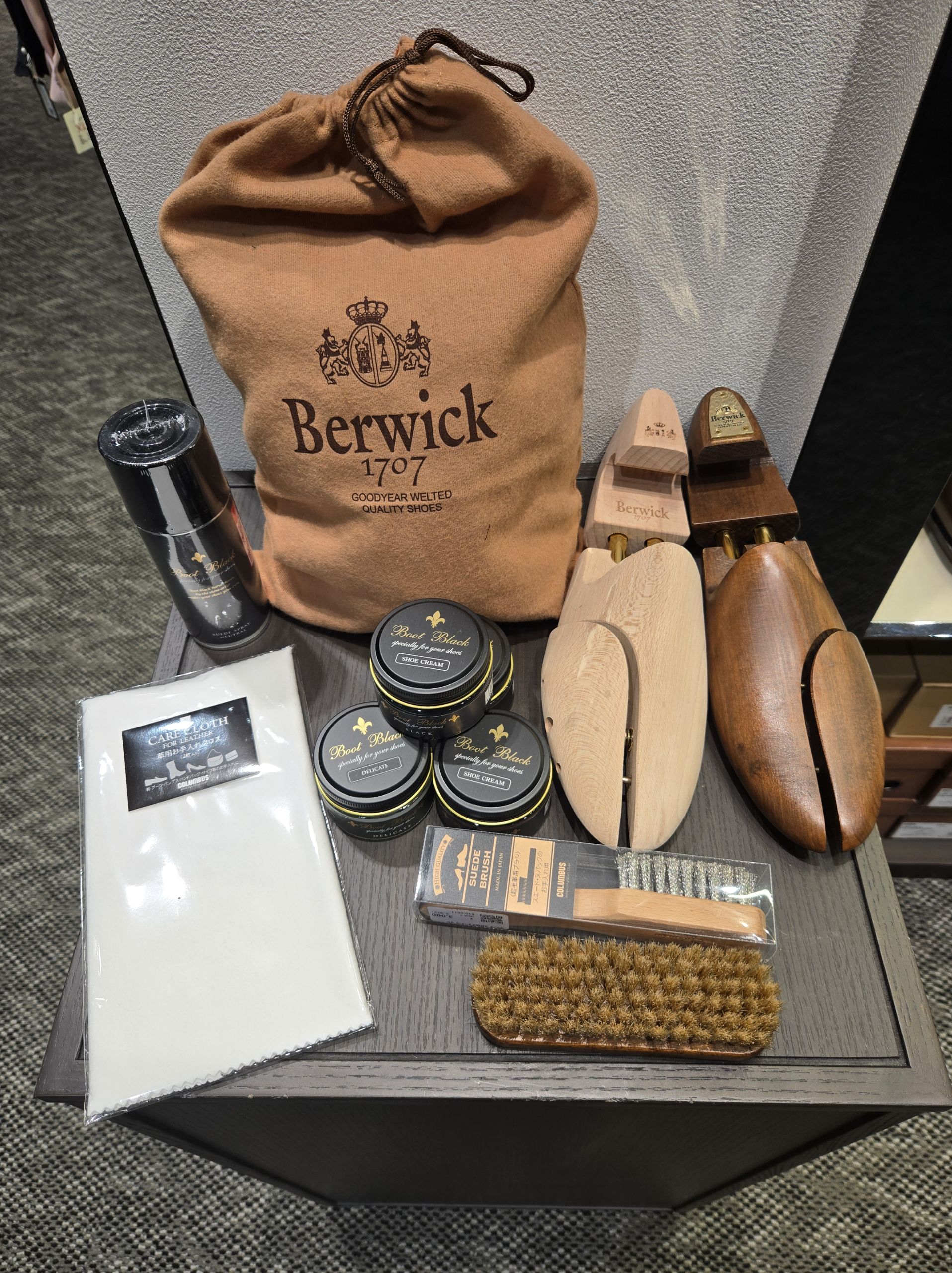 革靴を長く美しく履くためのお手入れ用品も入荷。
