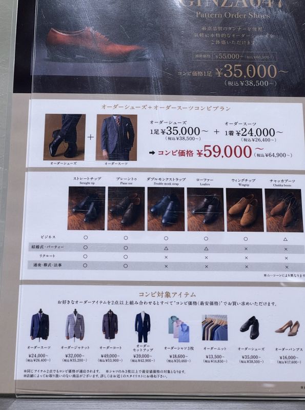 1足価格¥68,000円 スーツなどとご一緒ご購入いただますと…1足コンビ価格¥49,000円