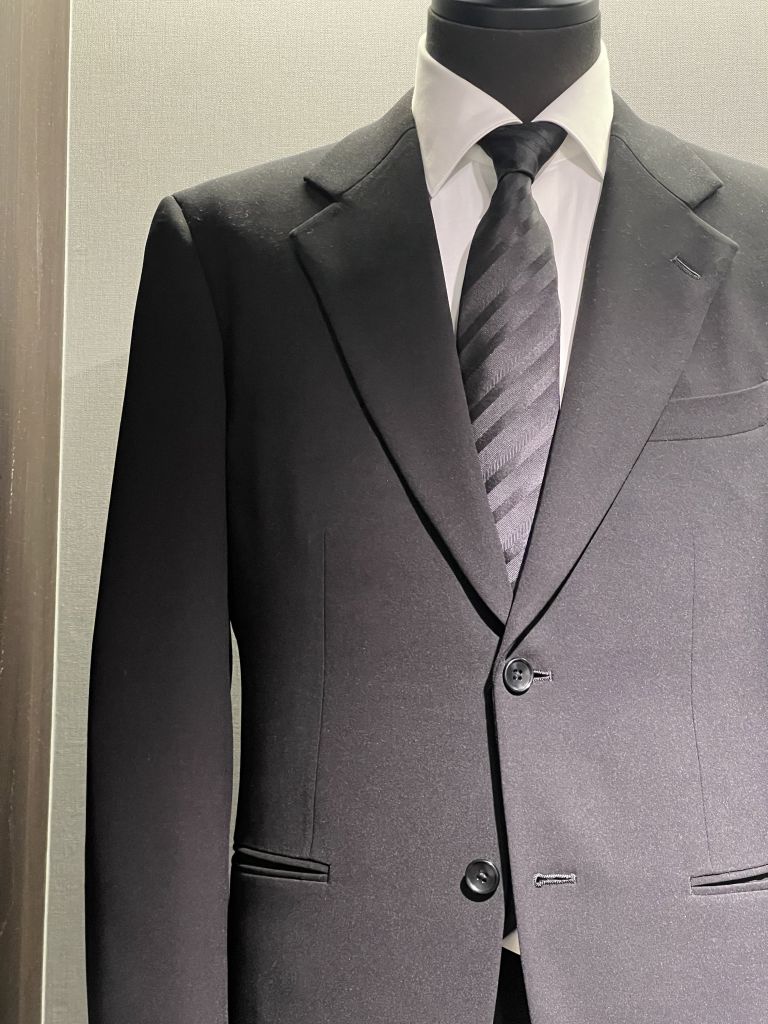 特徴としては、一般的なブラックスーツに比べてより濃い黒のお色味となります。