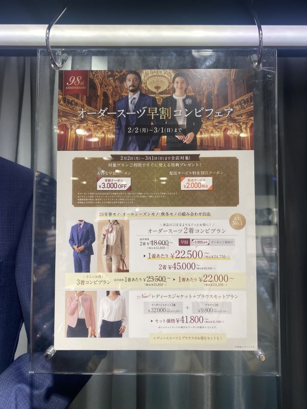 オーダースーツ早割コンビフェア開催中です!