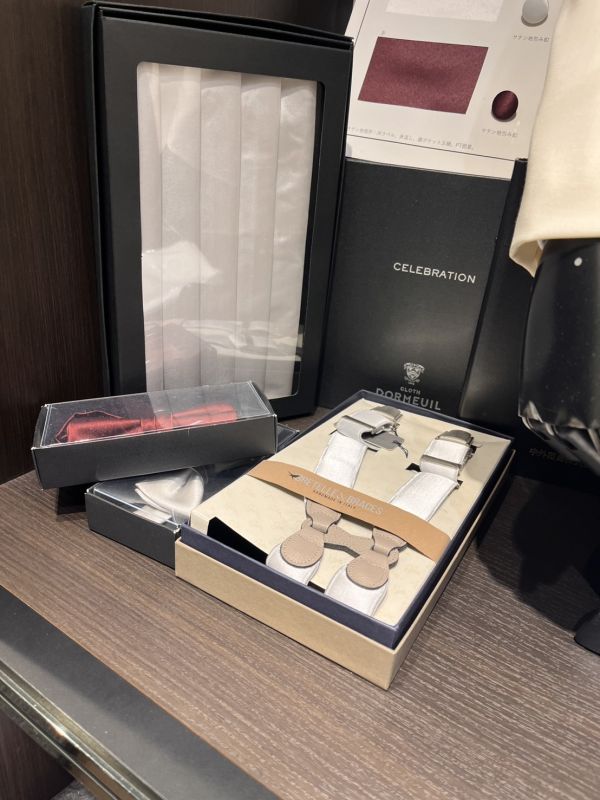 さらに、チーフやサスペンダー、カマーバンドなどのフォーマル小物もご用意。