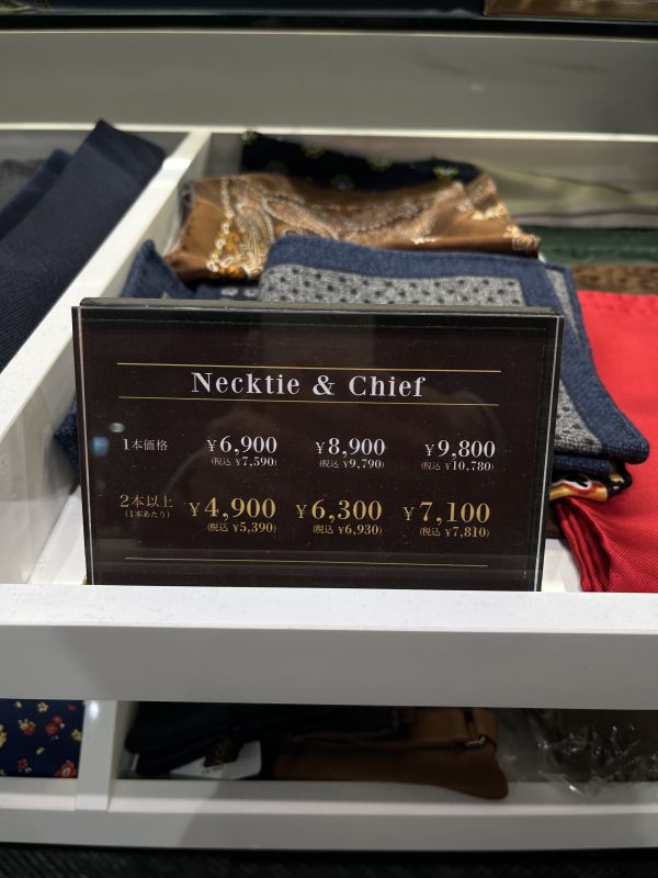実はグローバルスタイルではネクタイやチーフもコンビ価格があります。