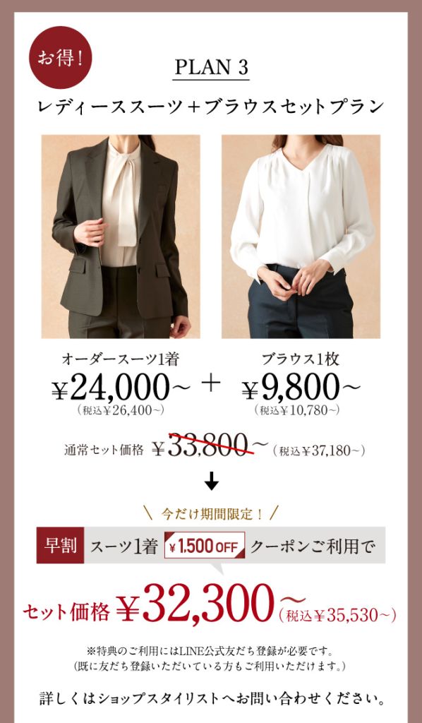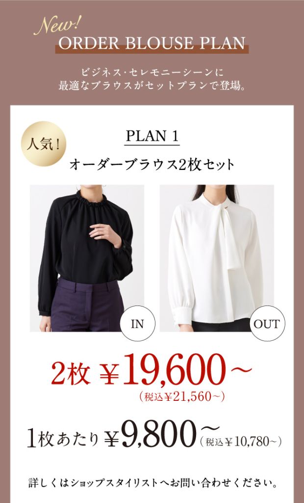 人気のオーダーブラウスにお得なセットプランが登場しました。