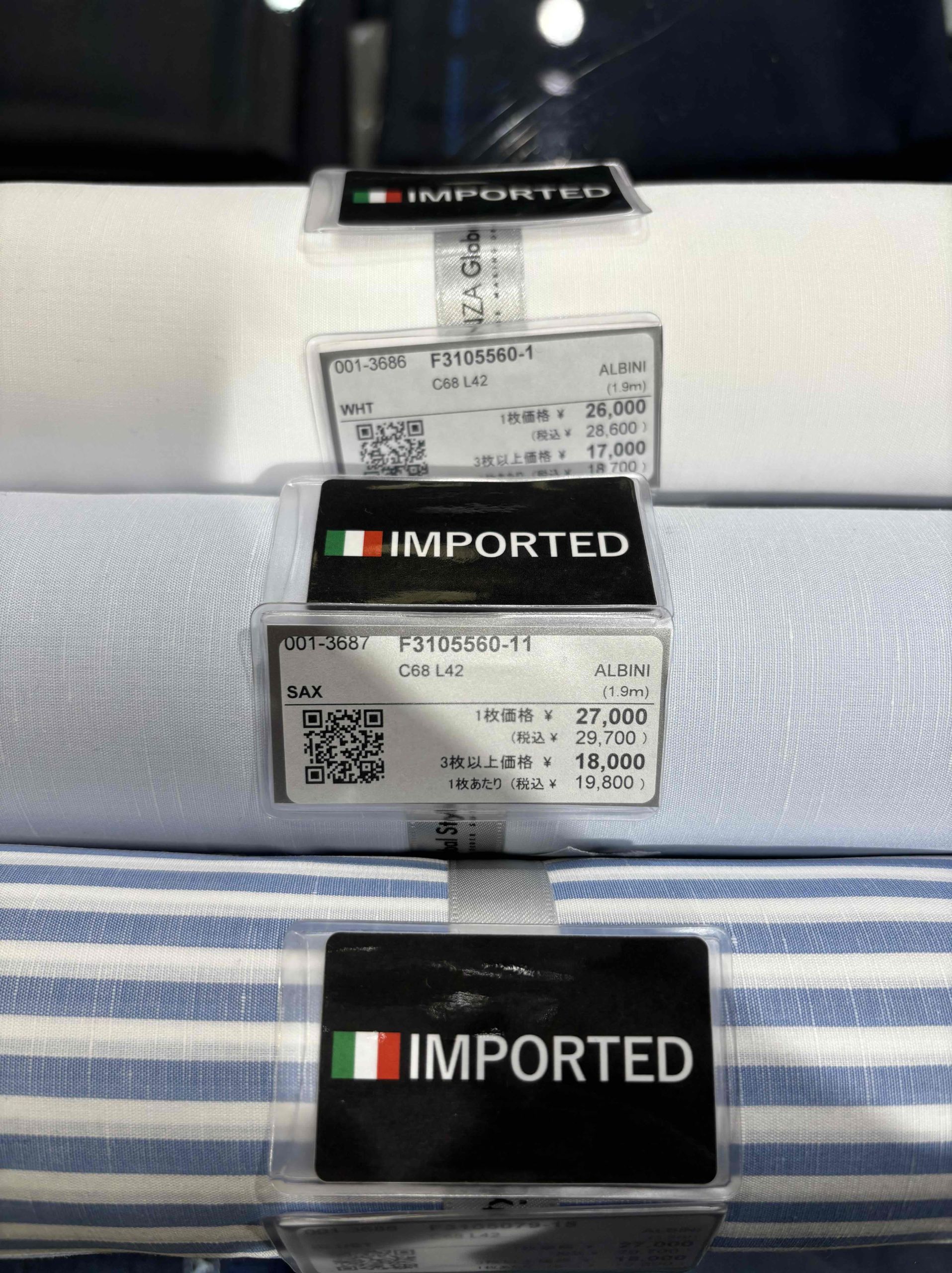ALBINIからコットンリネンの夏らしい生地がきました。ALBINIは高級天然素材に特化していて肌触り、光沢、発色が特徴です