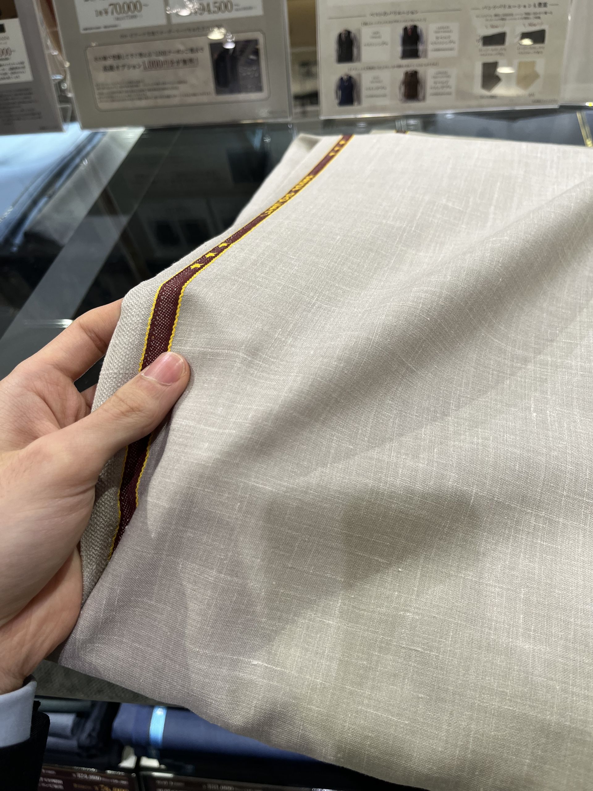 リネンにウールも混ざっている為パリパリになりすぎず柔らかさがあるのでかなり仕立て映えします。