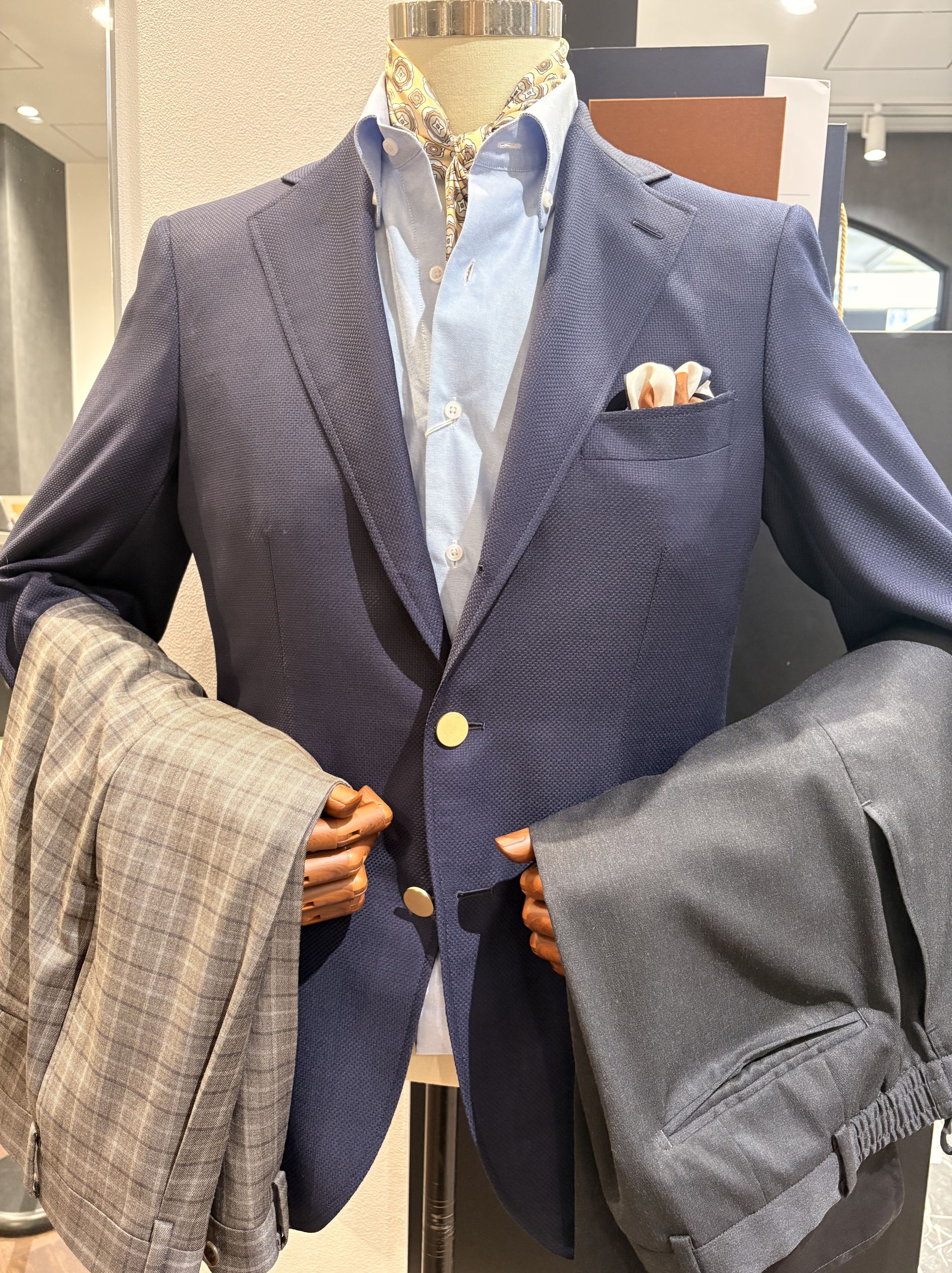 仕事でも着用でき、休日でも着回しができる絶妙なお色柄の生地から、