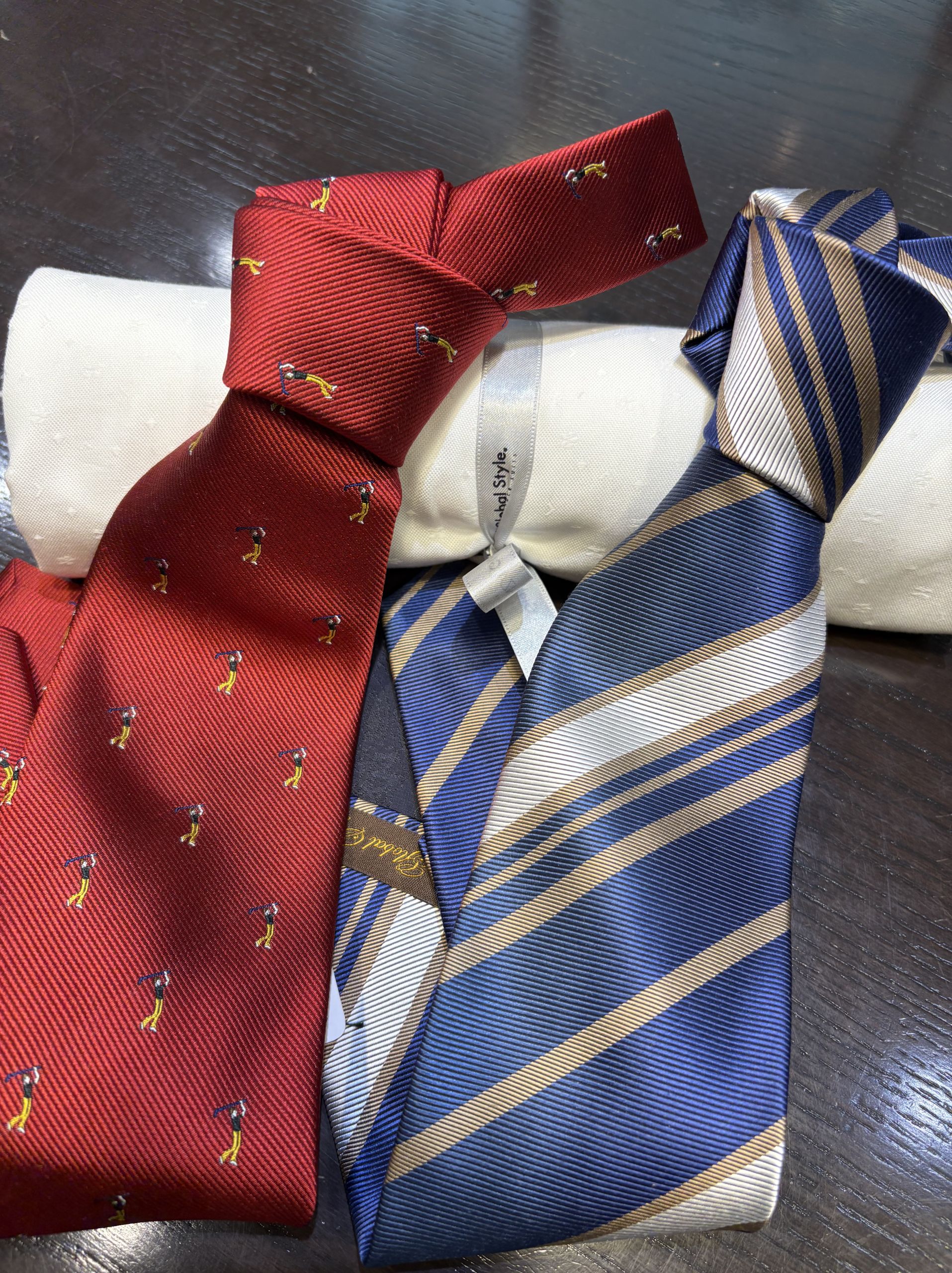 お洒落な柄シャツと合わせて、ひとひねりあるゴルフのネクタイなんかもあります笑