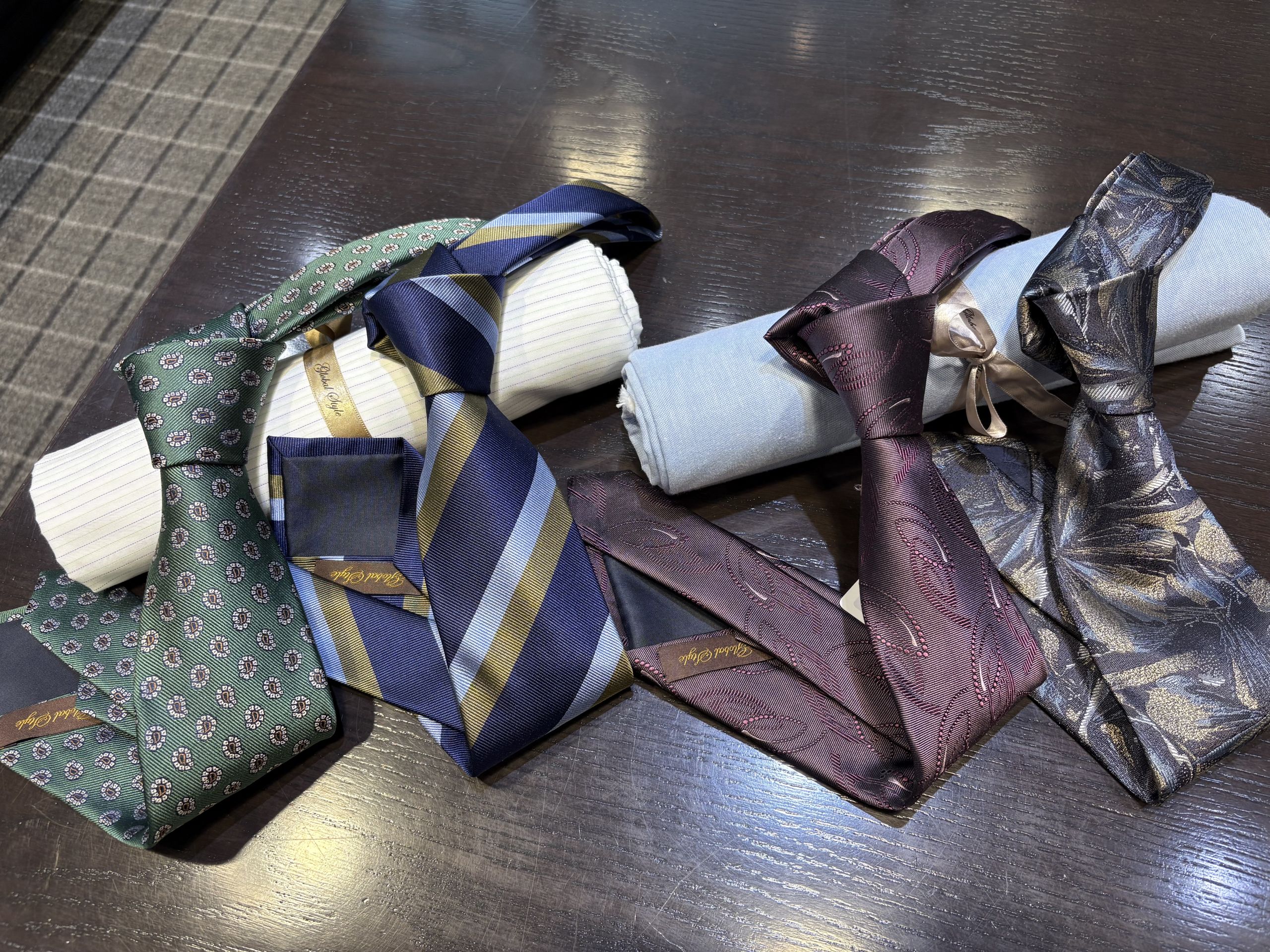 個人的にすてきだなあと思ったネクタイをシャツの色合わせをご紹介します↓