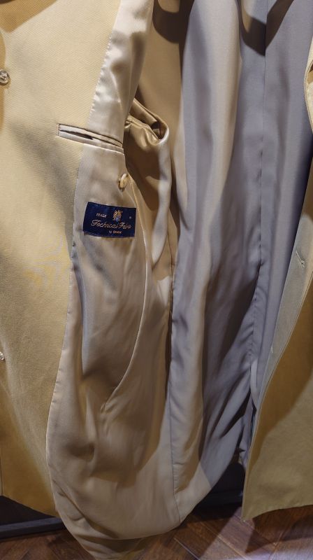 コートもスーツと同じくボタン裏地を選ぶことができます