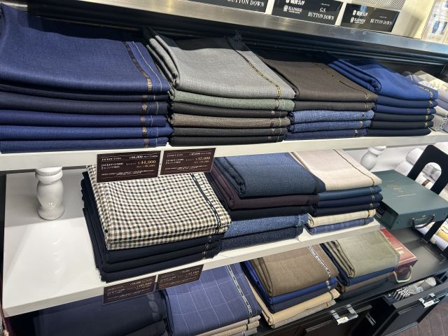 実際のジャケット生地を手に取って頂きながらお客さまのご要望を形にしていきます!