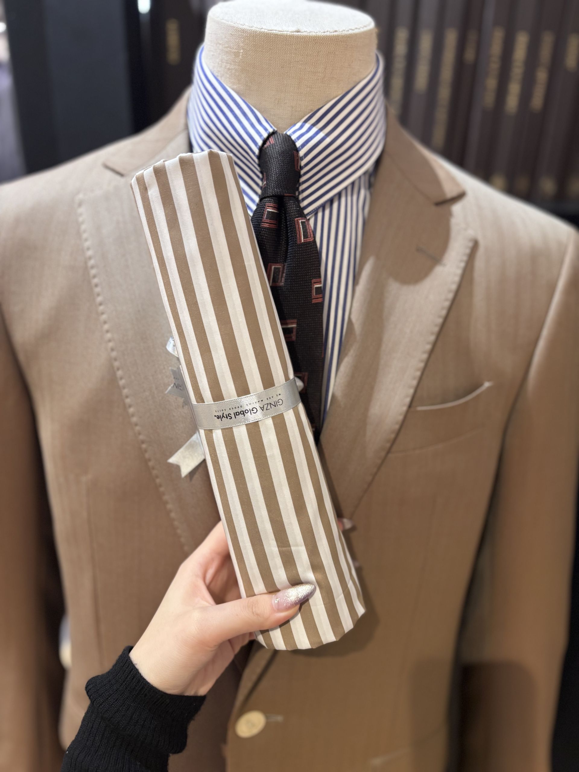 作ったのはベージュのストライプです!