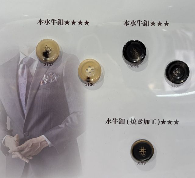 私が最もおススメする釦はやはり水牛ボタンです。