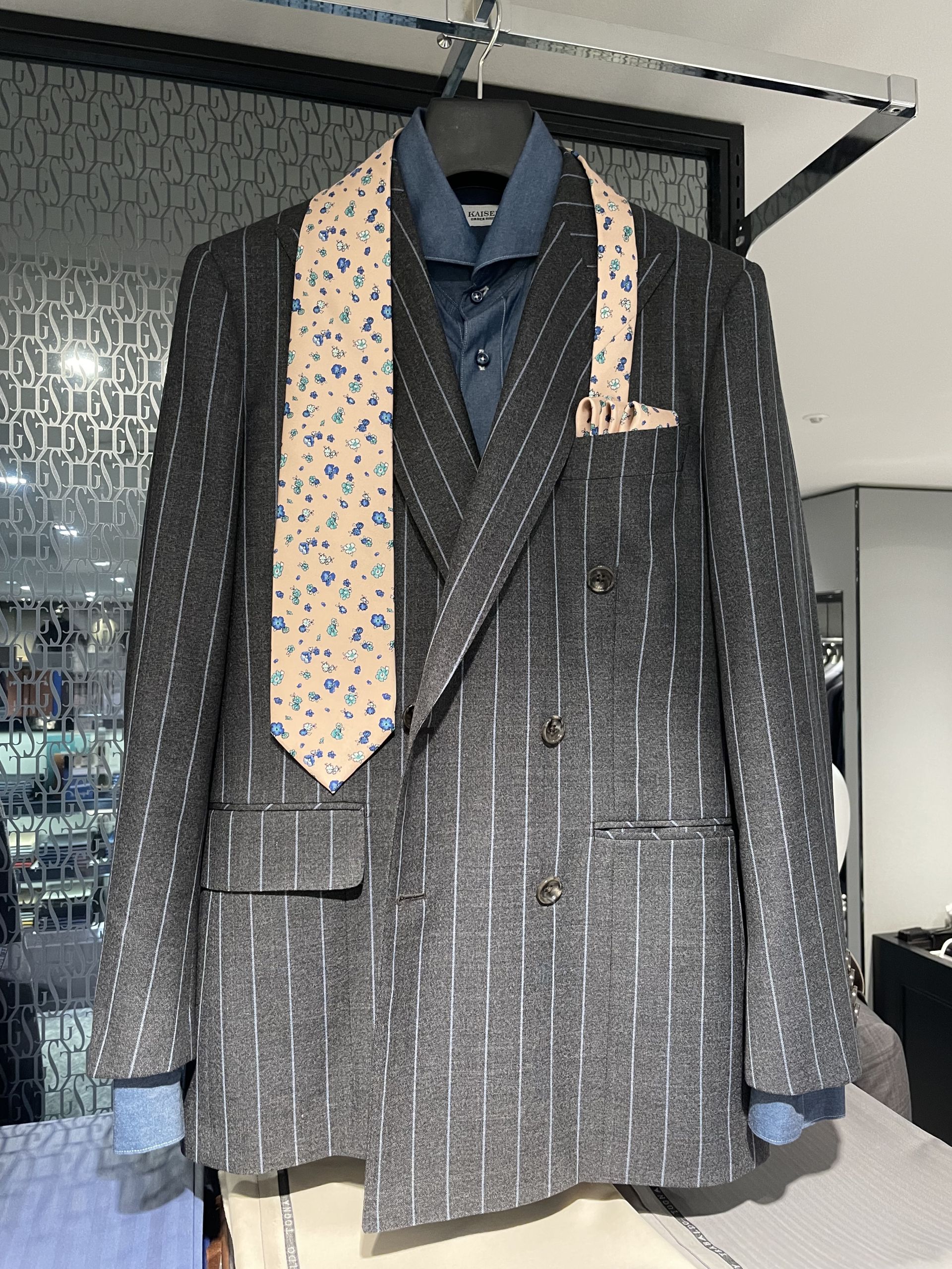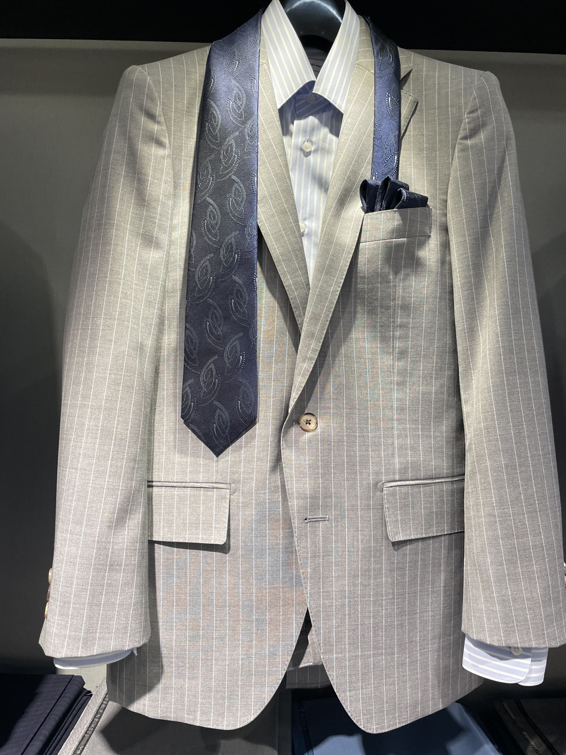 今時期はネクタイの在庫も豊富でお好みのコーディネートをご提案できます。