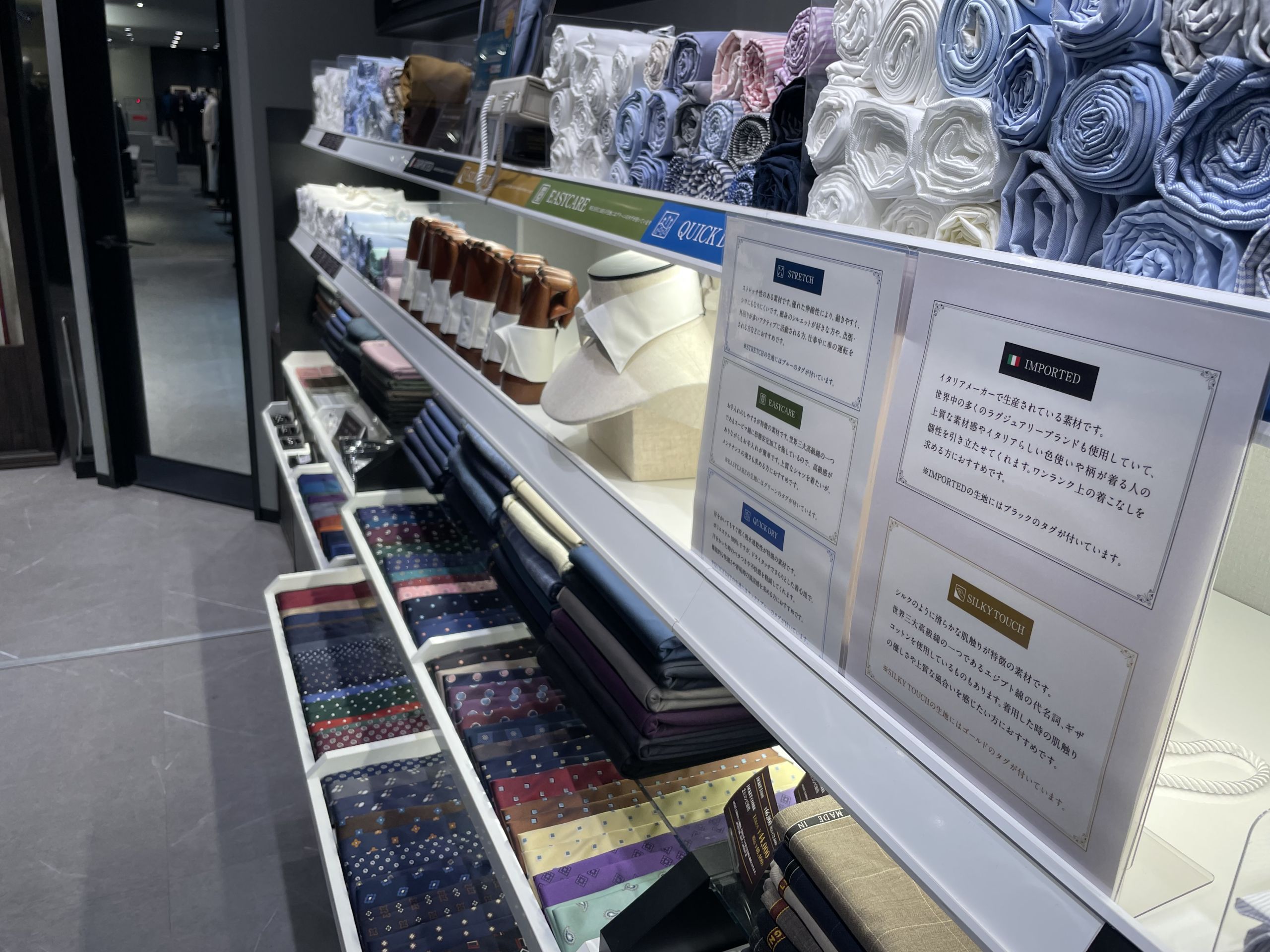 当店で扱っているシャツ・ネクタイもスーツのご注文の際ご相談ください。