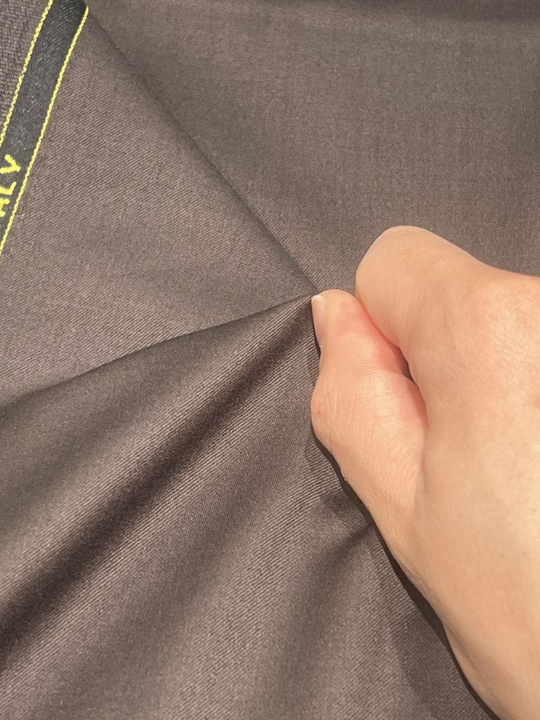 トラベラーは、オーストラリア産のスーパーファインウールを使い、強撚の双糸で織られた、ハリのある生地です。