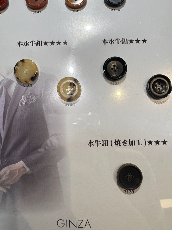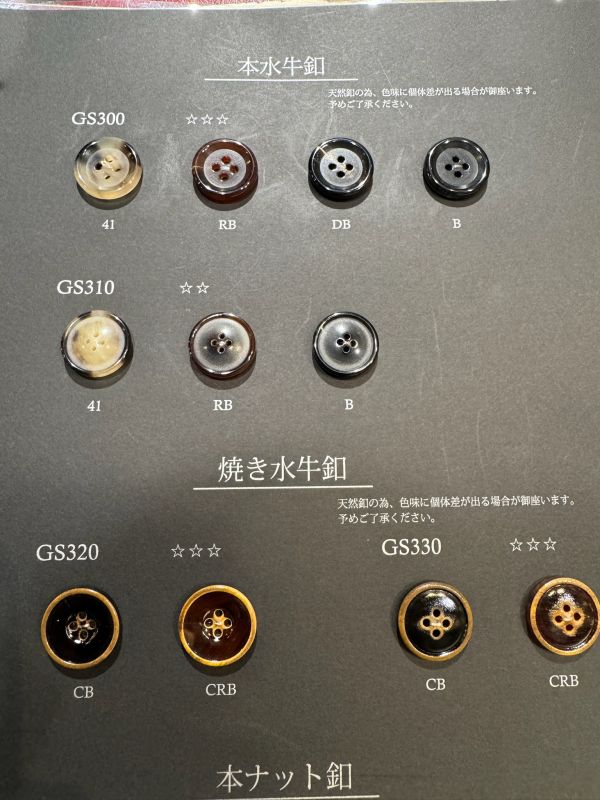 名前の通り、水牛の角を削りだしてできる高級な釦です。