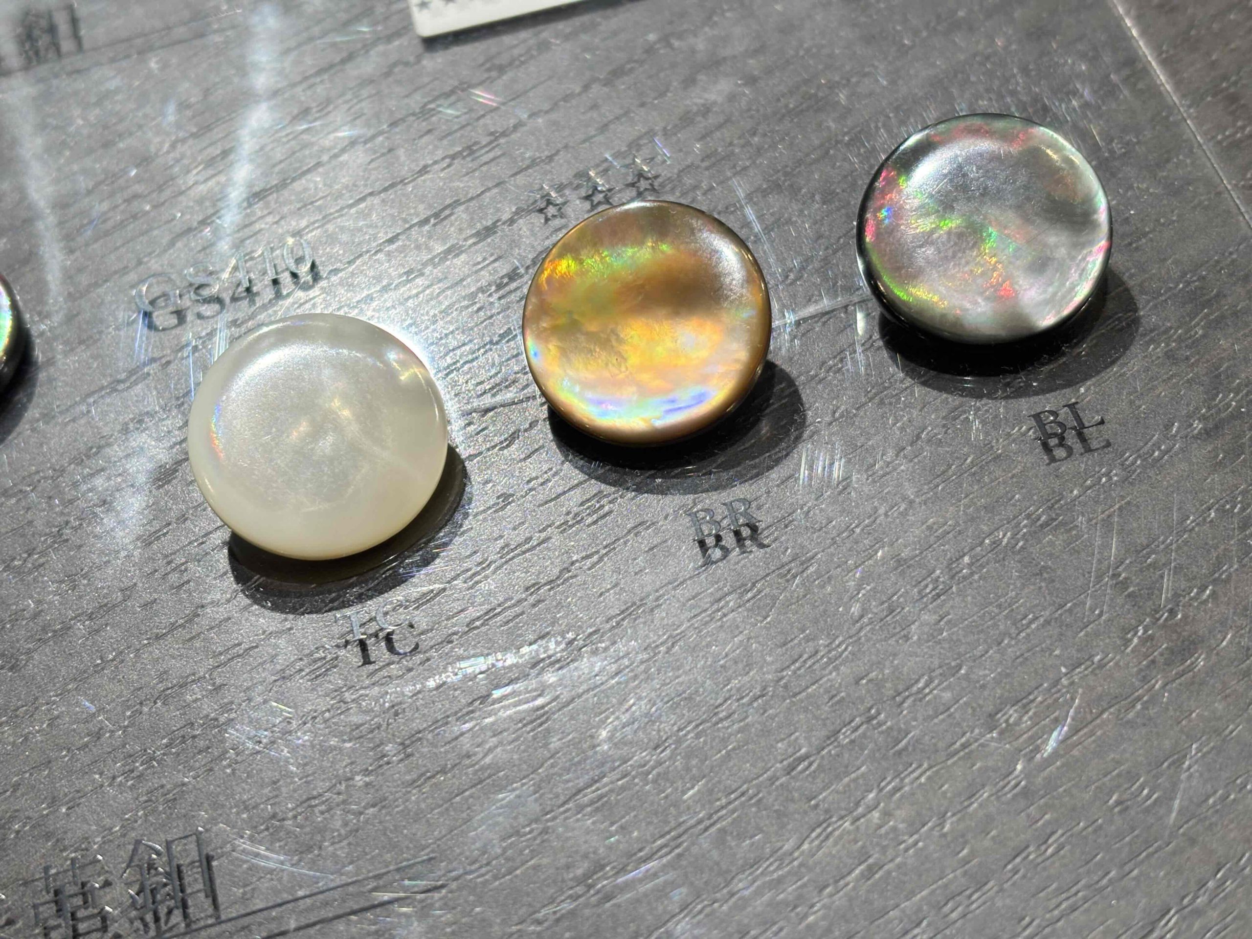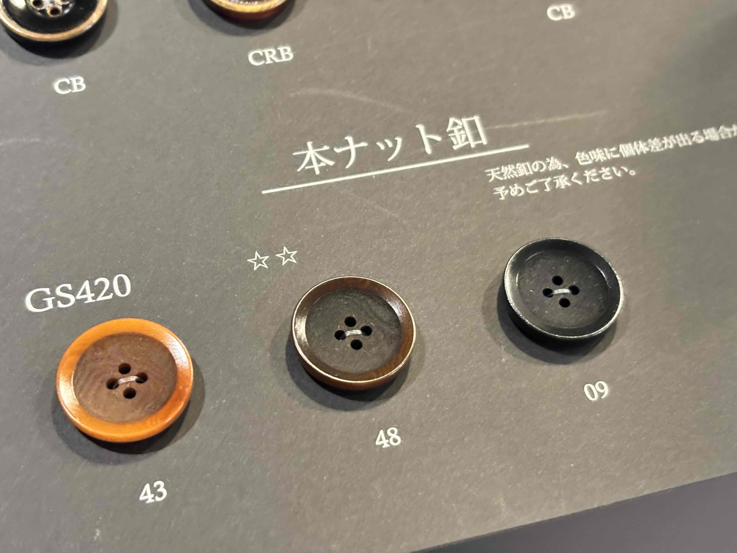 ナット釦はカジュアルな雰囲気になります