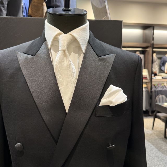 表参道にサンプルとして置いているタキシードはフォーマルブラックで仕立てたものですが