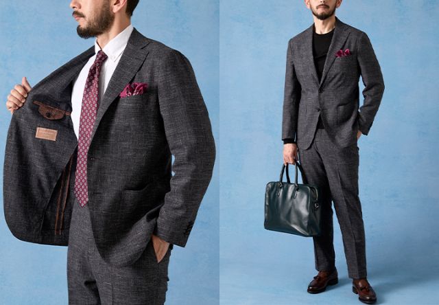 ウールが型崩れを防いでくれる、まさに良いとこどりの生地です。