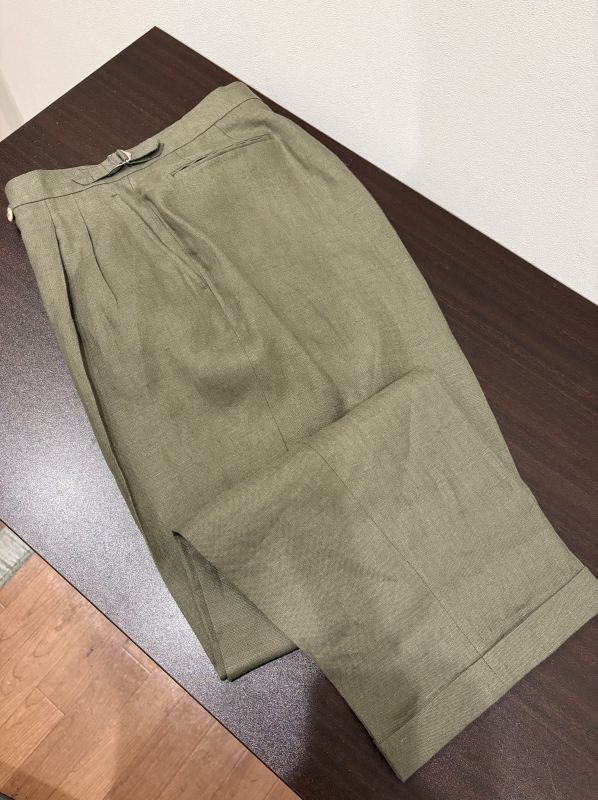 アイリッシュリネン生地ブランドの雄、「ベアードマクナット」で仕立てたスラックスです。