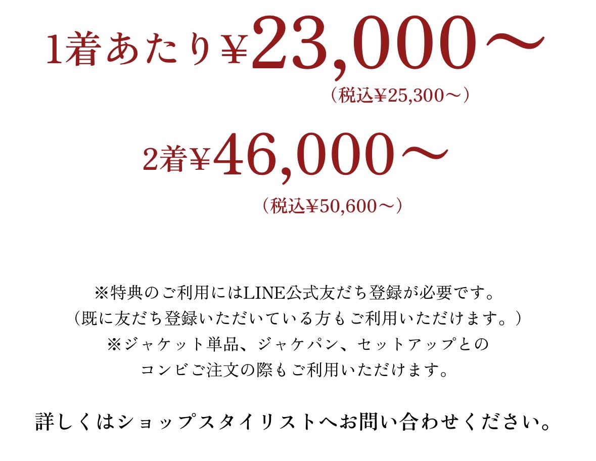 夏用仕立て(オプション税込2,200円)、脇尾錠(オプション税込3,300円)、タック入り、ダブル仕上げなど随所に私のこだわりを。