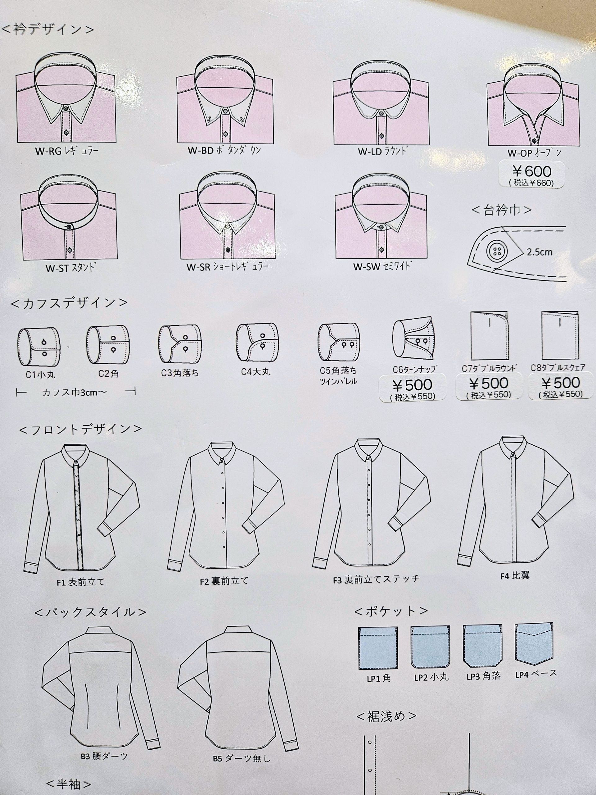 ディティールも衿型やカフスなど細かい所までお選び頂けます