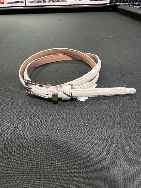 こちらのベルトは細身なので、ゴツくならずに女性らしくコーディネートできます。ヒールのパンプスと相性が良いです!