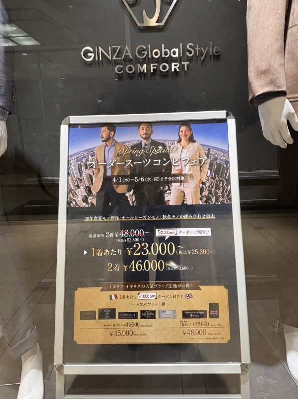 さて本日のブログは、4月1日~5月6日まで2着でスーツがオーダーできるフェア開催中ですのでご紹介させていただきます!