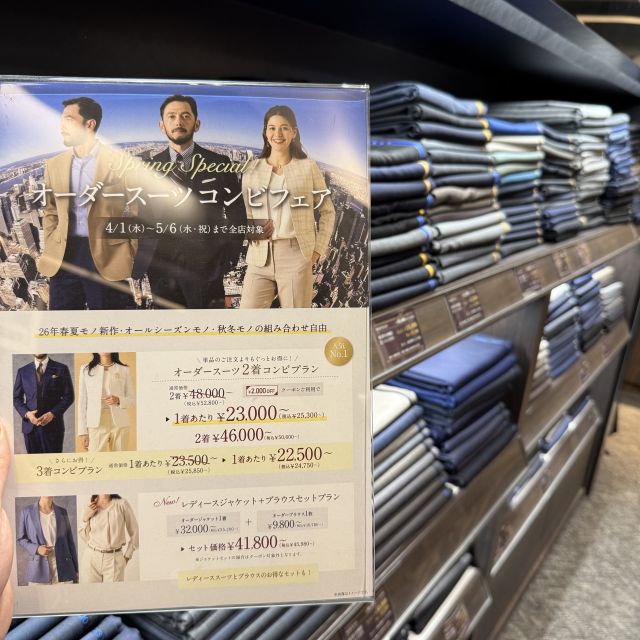 今月はスーツ2着同時ご購入でトータル2000円オフになります◎