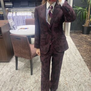 パープルはネイビーやチャコールグレーのスーツ等に合わせても