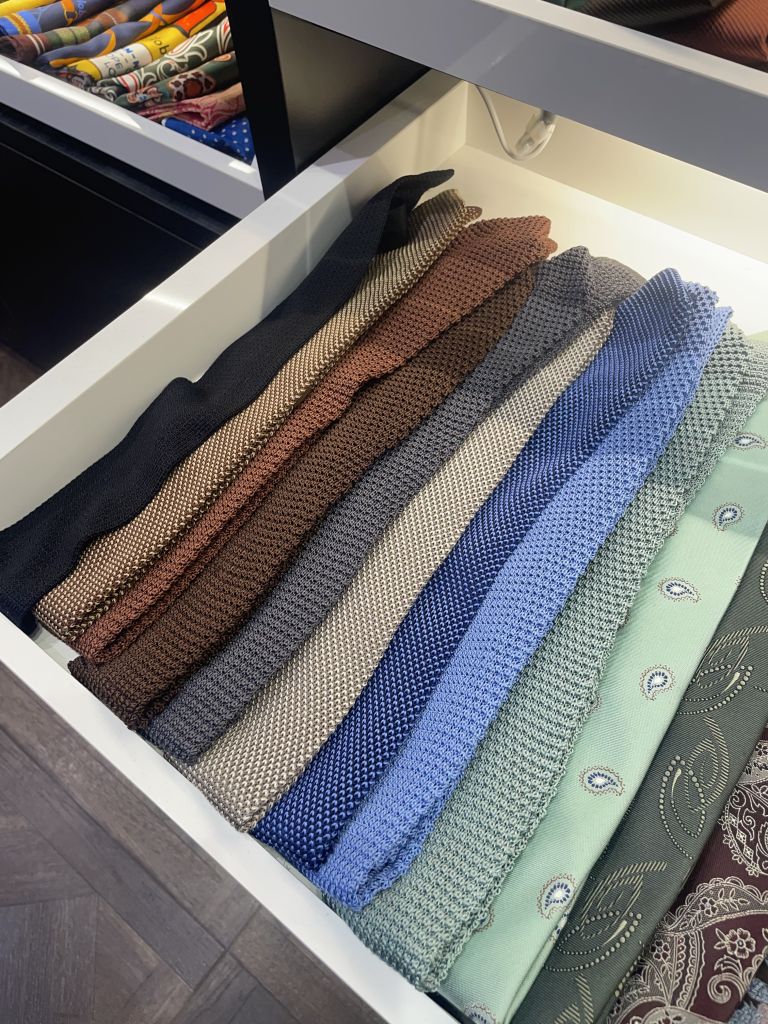 柔らかい印象のニットタイですが程よい上品さを演出してくれる他、抜け感もありつつ季節感を演出しやすいのが魅力でもあります。