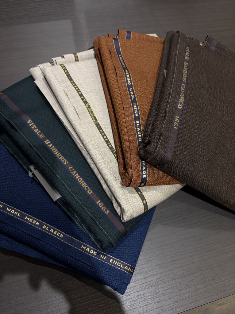 普段お使いのデニムやスラックスにも簡単に合わせることができますし、これから朝夜は涼しく昼間は暑いといった、今やこれからの季節感にピッタリなアイテムだと思いますので、一度当店で仕立て見てはいかがでしょうか?