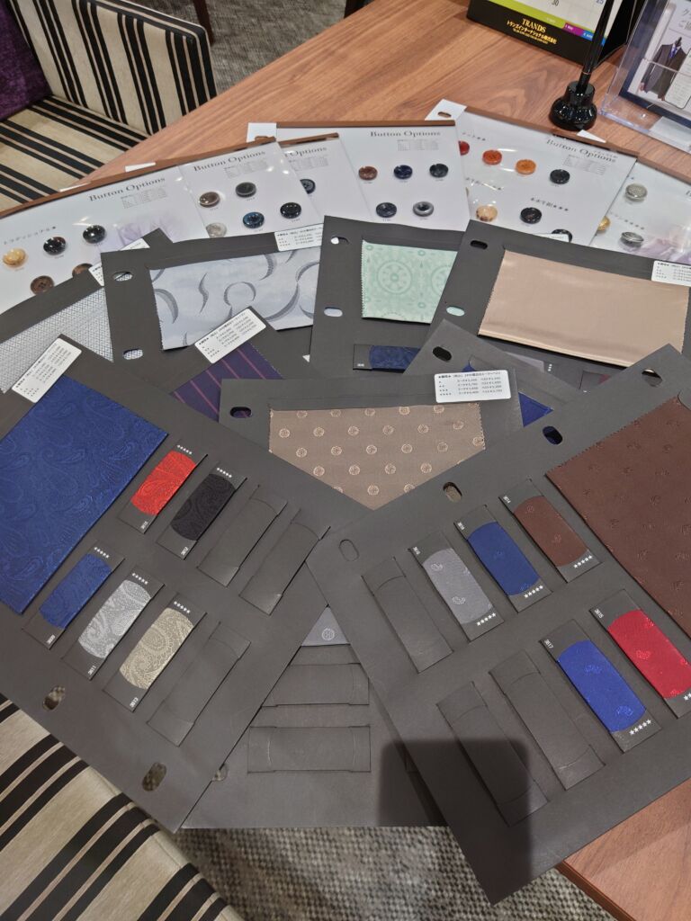 また、オプションでお選びいただけます裏地や釦も豊富にご用意しております。
