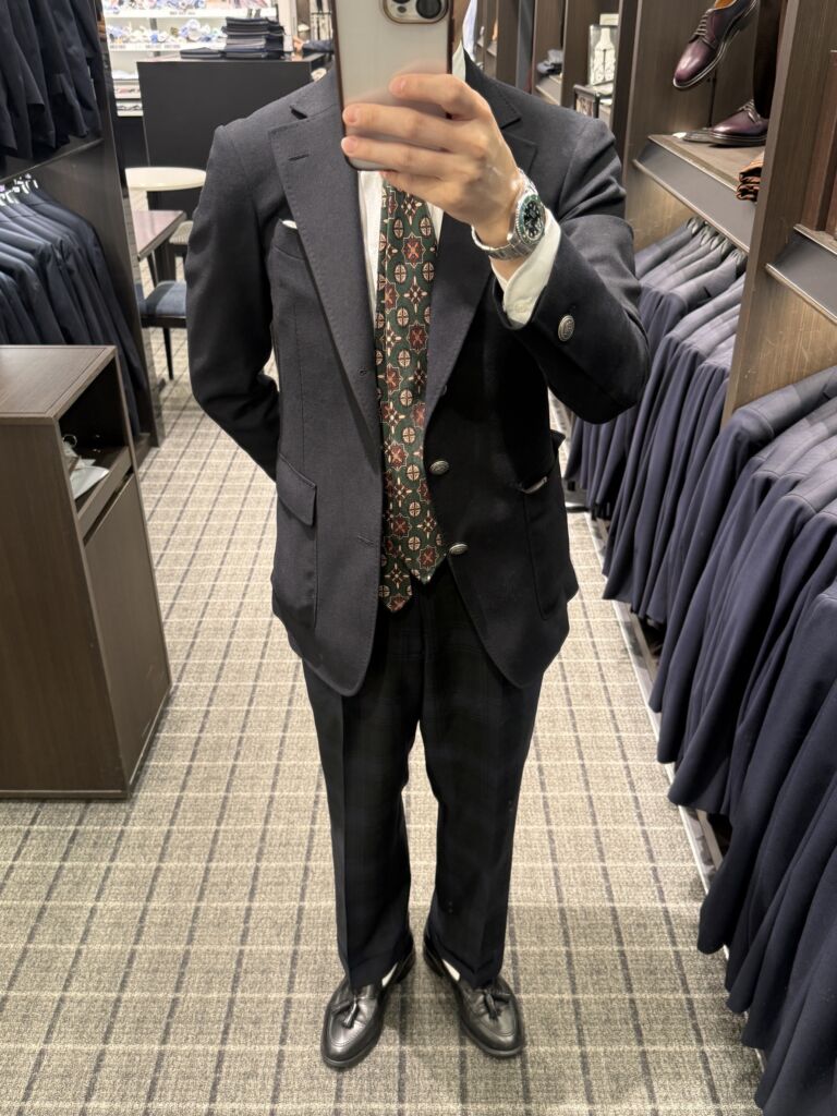 そして私事ではございますが、紺ブレにブラックウォッチパンツ完成いたしました!
