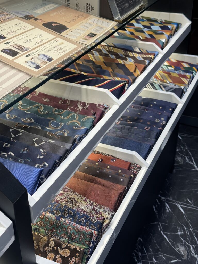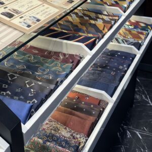 Premium Marunouchi本店ではベーシックからトレンドの柄まで豊富な種類のネクタイを常時展示しています。