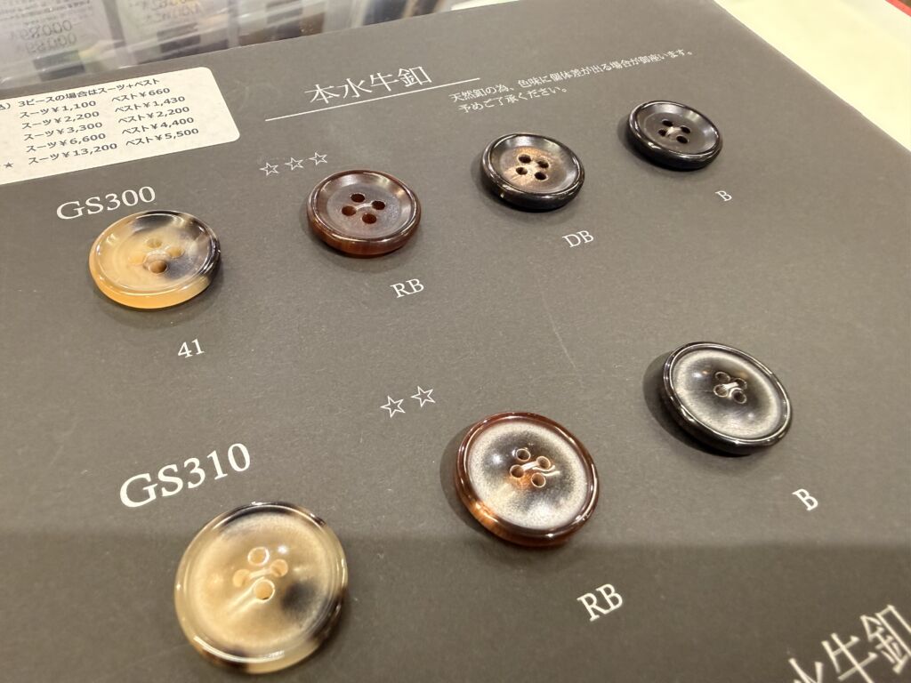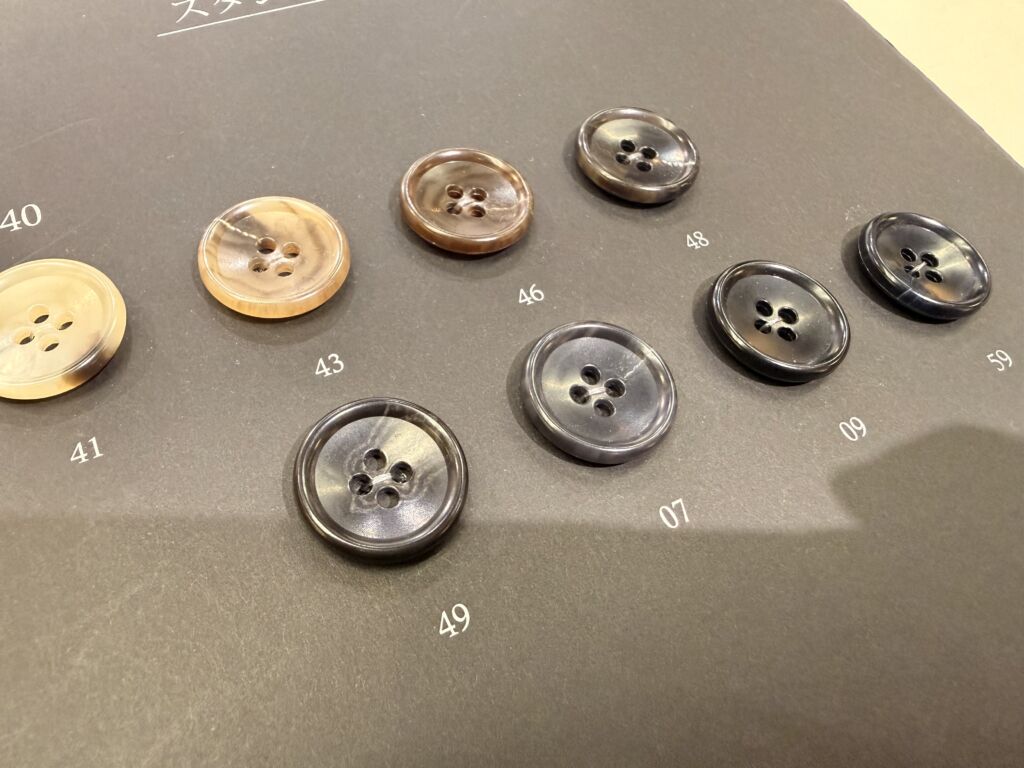スーツといえば水牛釦といえるほどに、スーツと水牛釦は王道中の王道です。