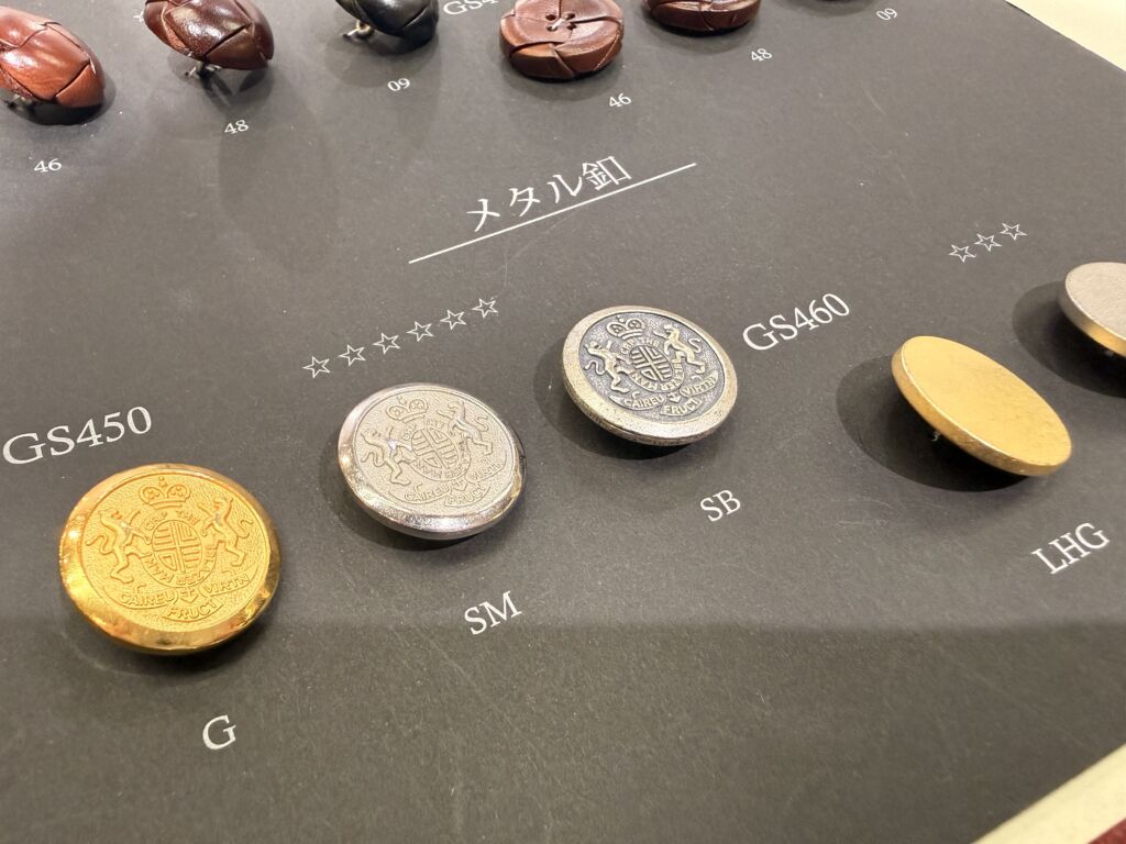 最後にメタル釦のご紹介です。お値段少し変わりますが