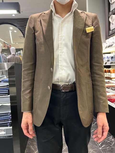 私も本日のジャケットはリネンが入った生地(リネン50%・ウール50%)